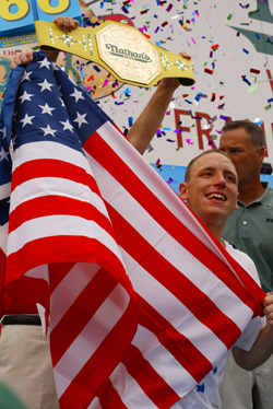 Every Independence Day since 1916, Nathan’s Famous has sponsored their International Fourth of July Hot Dog Eating Contest at Coney Island. But don’t for a minute think these contestants are simply a bunch of big dudes who can pack away a lot of food. This is serious business. They call themselves “competitive eaters” (I only thought this referred to trying to get seconds on Thanksgiving before my (at the time) teenaged stepbrothers devoured the whole spread.) Most belong to an organization called Major League Eating, and membership is required if you want to belly up to the barbecue at the Coney Island gorge fest.
